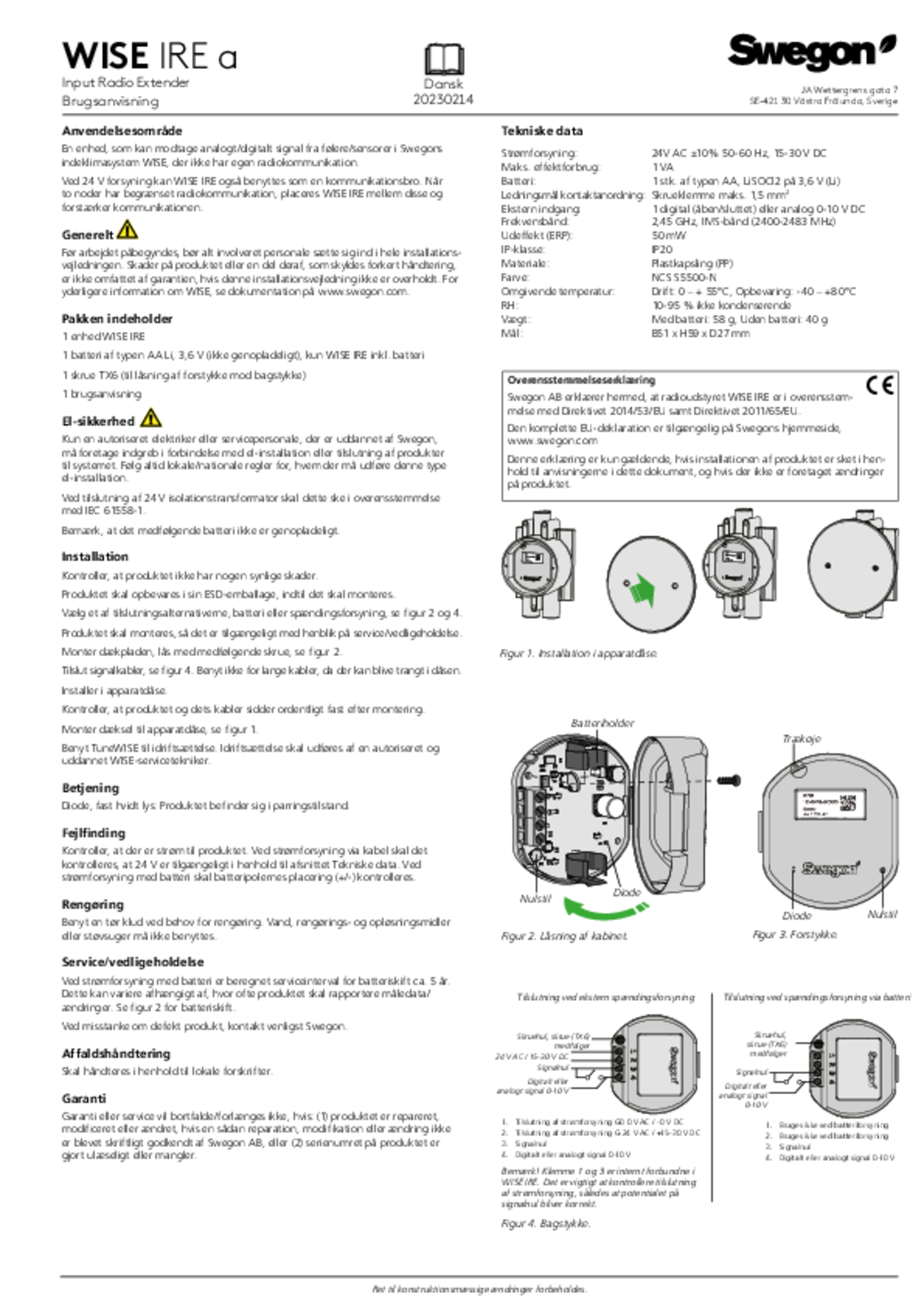 | Brugsanvisning (pdf 390.02kB) | WISE IREa | DV-manual | |