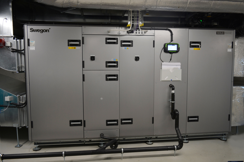 Mit dem Swegon Gold HC (Heizen - Kühlen mit reversibler Wärmepumpe) sowie der intelligenten Regulierung – IQlogic - können die Anforderungen an das Klima erfüllt werden. Dank der IQlogic regeln wir auch die adiabatische Befeuchtung eines dritt Herstellers.