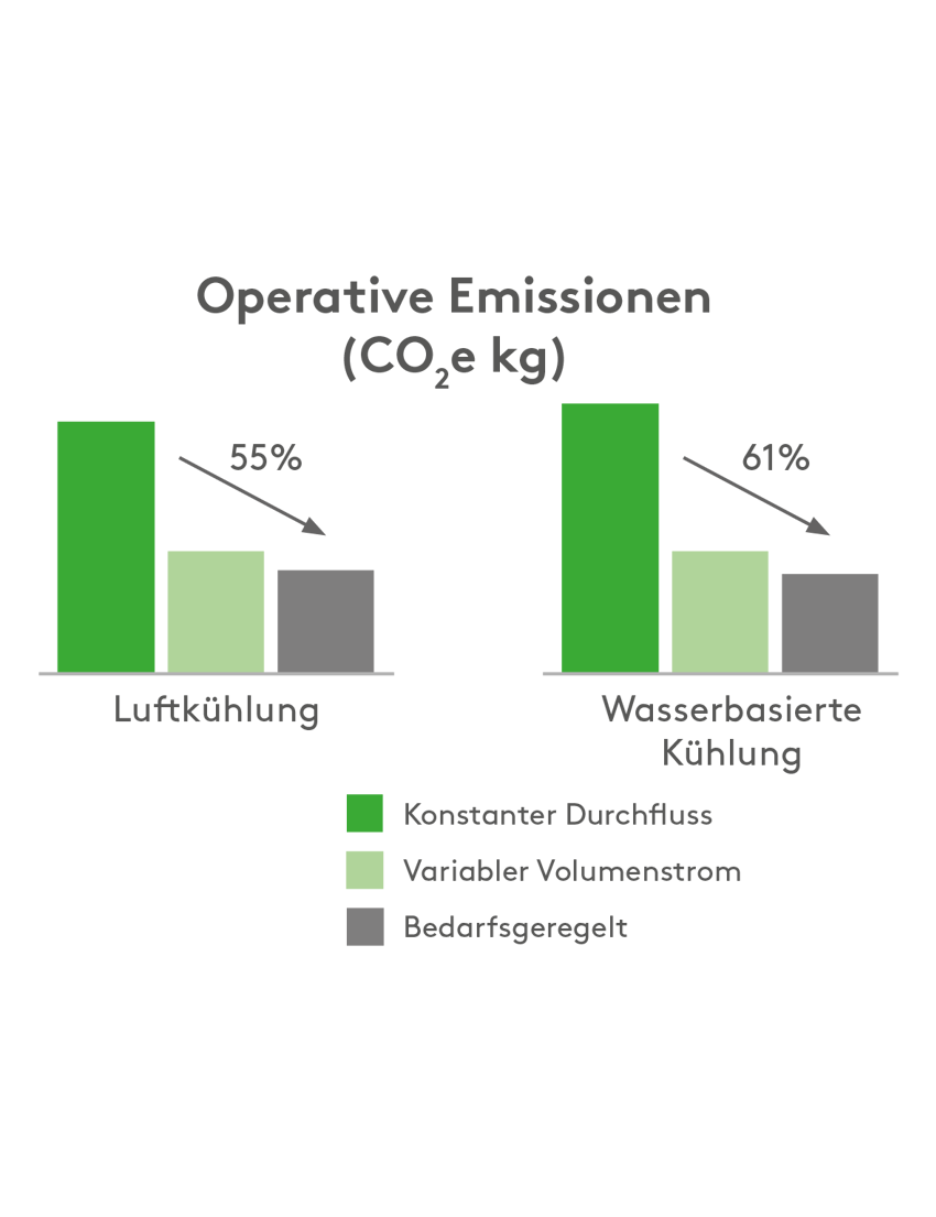 Ein geringerer Energieverbrauch führt zu einer geringeren Klimabilanz. Mit einer bedarfsgesteuerten Lösung können die CO2-Emissionen um bis zu 61 % gesenkt werden, was einen wirksamen Beitrag zu einer nachhaltigeren Zukunft darstellt.