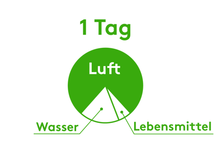 Zusätzlich zu unserem täglichen Bedarf von 1 kg Nahrung und 3 kg Wasser - benötigen wir auch 13 kg Luft.