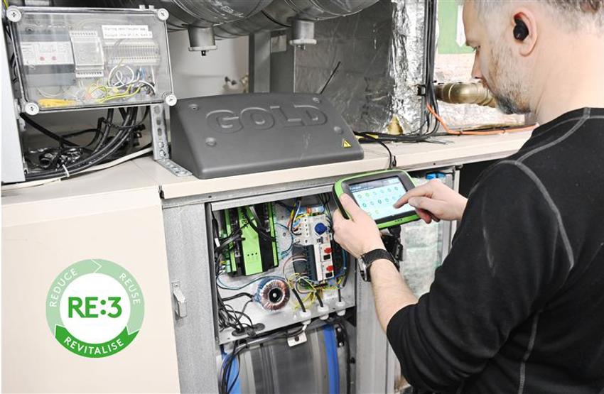 Im Rahmen von RE:vitalise erhält das System durch den Austausch von Komponenten und durch moderne, energieeffiziente Funktionalitäten eine verlängerte Lebensdauer. Der Unterschied zwischen RE:vitalise und herkömmlichem Ersatzteilaustausch besteht in den 10 – 20 zusätzlichen Jahren Betriebszeit der revitalisierten Produkte. Das „Refurb Kit“ ermöglicht es, ältere Lüftungsgeräte neu zu ertüchtigen und auf den aktuellen Stand der Technik zu bringen. Dieses Modernisierungspaket wird je nach Bedarf zusammengestellt. Es werden die Teile ausgetauscht, die natürlichem Verschleiß unterliegen, und die Regelung wird auf den neuen Stand der Technik mit allen modernen Funktionalitäten gebracht.