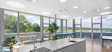Der Arzneimittelhersteller Abnoba errichtet am Rand des Schwarzwalds eine neue Betriebsstätte für Verwaltung und Forschung. Swegon trug mit Kaltwassersätzen und Innenraumgeräten zum durchdachten Klimasystem bei.