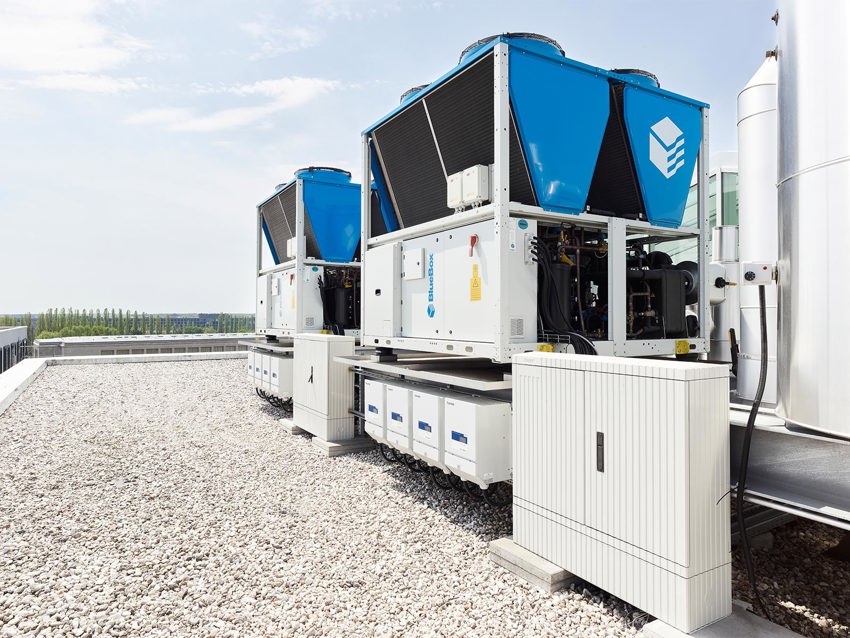 Die zwei voneinander unabhängigen Bürokomplexe der Kassenärztlichen Vereinigung wurden mit jeweils zwei Multifunktionseinheiten Swegon BlueBox OMICRON REV S4 HE 22.4 LN ausgestattet. Jede Anlage erbringt 220kW Kühlleistung bzw. 160kW Wärmeleistung. Alle wurden in einer schallgedämmten Version umgesetzt.