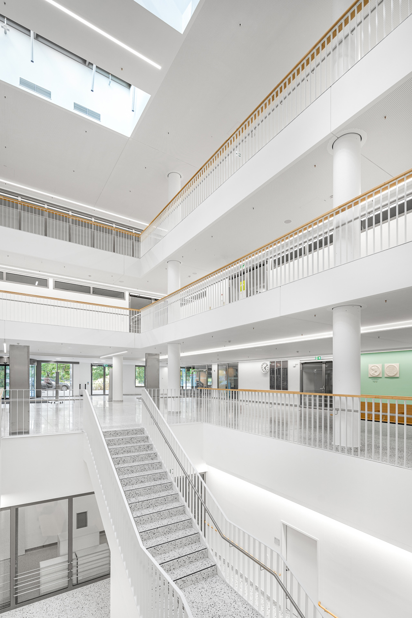 Ein wichtiger Hebel für umweltschonende Ressourcennutzung ist die Haustechnik, also zum Beispiel das Wärmeverteilsystem, das die Gebäudeteile mit Kälte, Wärme und Frischluft versorgt. Um die Wärme- bzw. Kälteenergie effizient an den Ort zu befördern, wo sie benötigt wird, wurden die Klimadecken VARICOOL UNI, SPECTRA M und SPECTRA K aus dem Hause Zent-Frenger, ein Tochterunternehmen von Swegon, installiert.