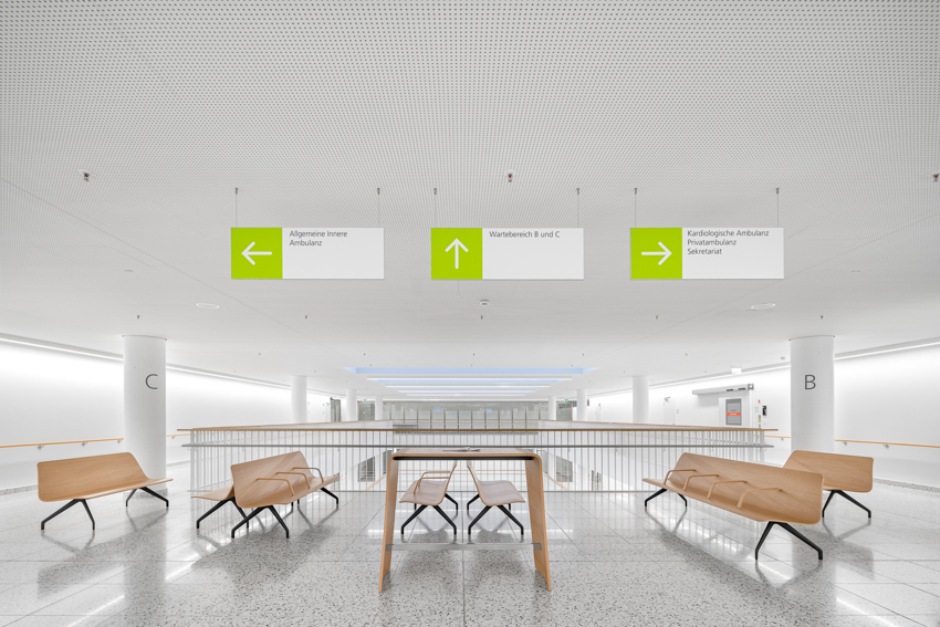 Überdies besitzt die Hälfte der installierten Deckenfläche durch ihre schallabsorbierende Wirkung akustische Vorteile und ein Großteil der Elemente wurden aus hygienischen Gründen staubdicht realisiert.