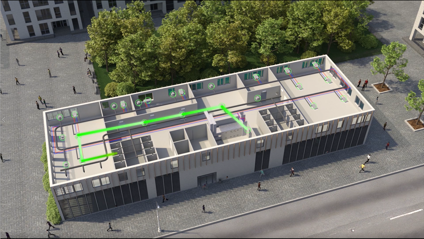 El sistema pasa a la "velocidad económica" tan pronto como la demanda en el edificio disminuye - la ventilación, la refrigeración y la calefacción se basan instantáneamente en la ocupación y la demanda de los usuarios.