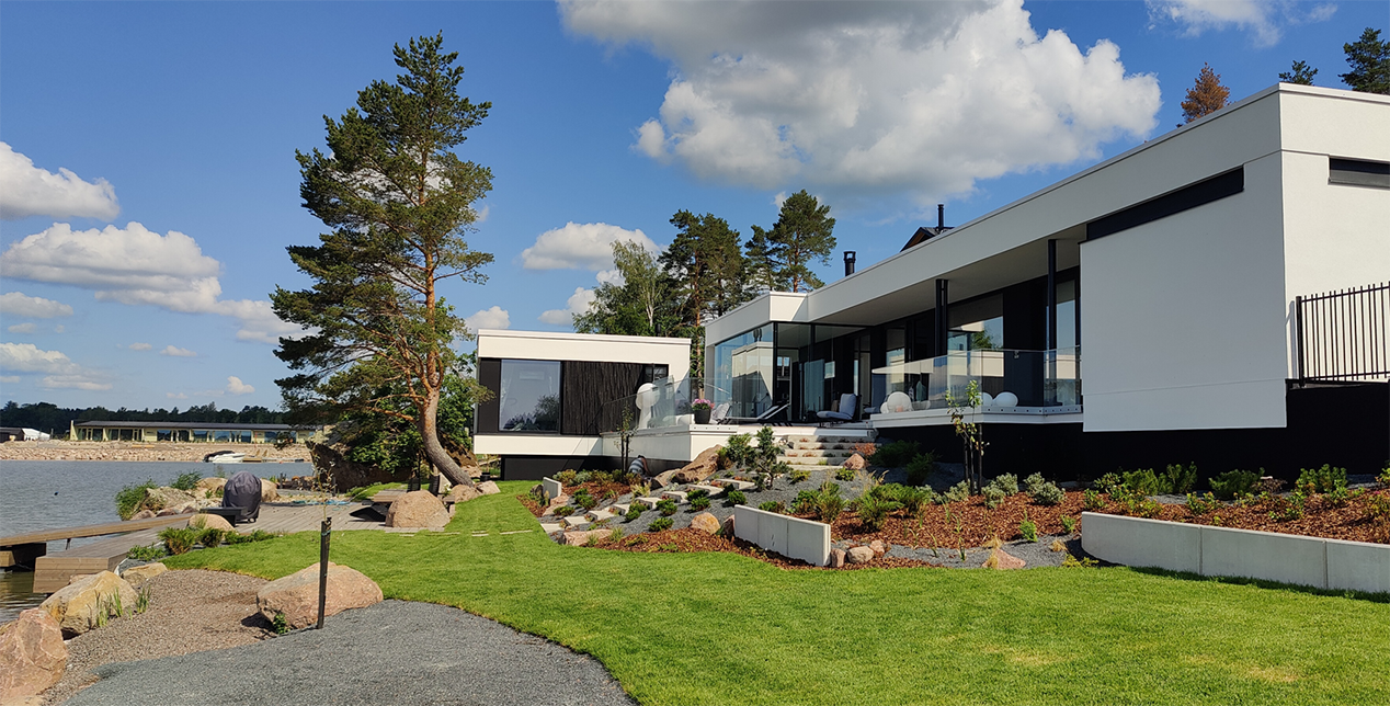 - Ihastuimme kuitenkin mahdollisuuteen, että pääsisimme rakentamaan tällaiselle paikalle, messujen halutuimmalle tontille. Paikka sijaitsee pikkukaupungin ytimessä meren rannalla, on luonnonsuojelualueessa kiinni ja tässä sai vielä rakentaa aivan rantaan. Vastaavia tontteja ei Suomessa ole missään muualla.