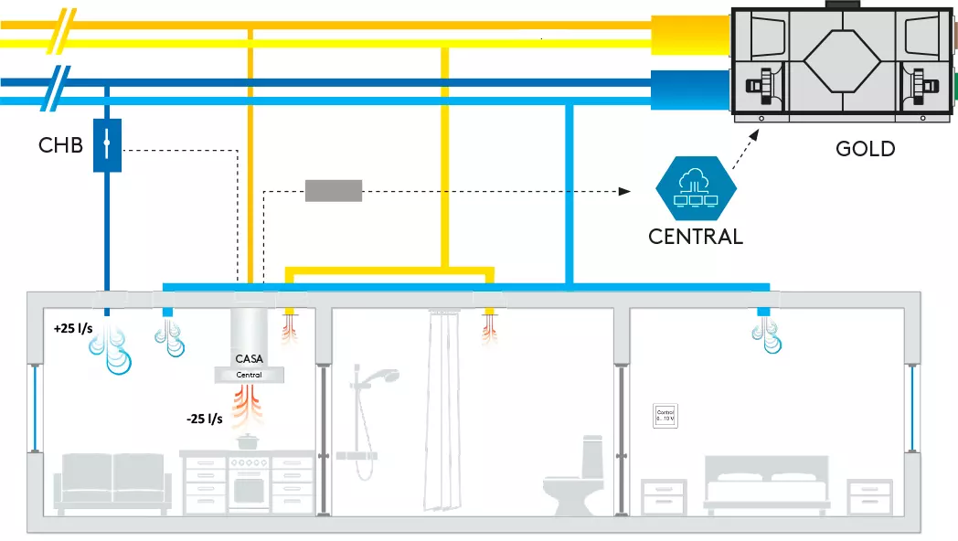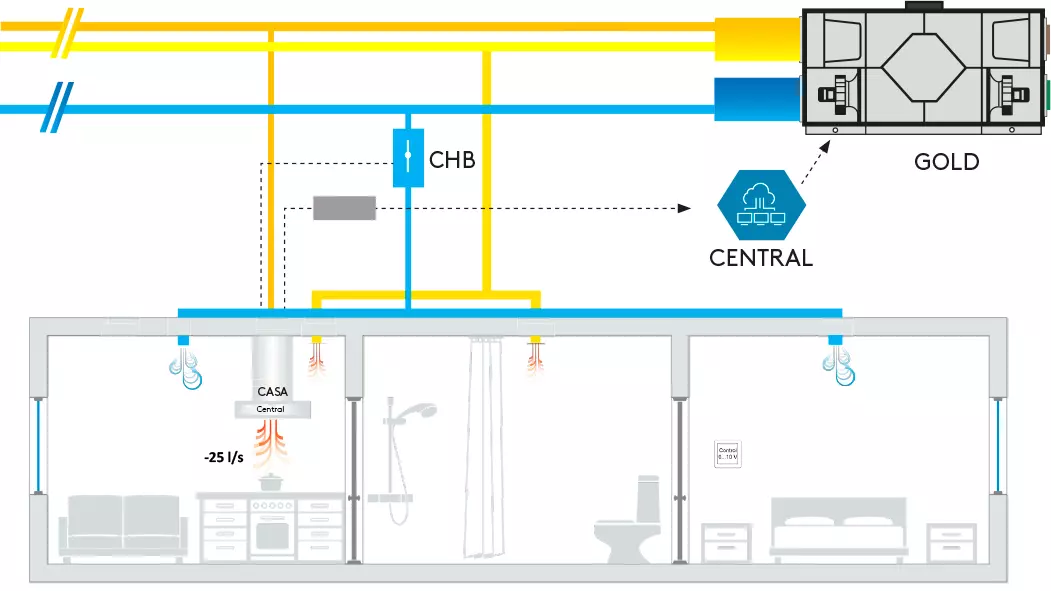 Balansointiyksikön eli CHB-pellin avulla tasapainotetaan kerrostalon ilmanvaihtoa. Se kompensoi liesikuvun tehostuksen ja yleispoiston (perusilmavirta) aiheuttamaa alipainetta asunnossa avaamalla säätöpellin, jolloin kanavapaineet muuttuvat kanavistossa. Keskitetty ilmankäsittelykone pitää kanavapaineen vakiona nostamalla ilmamäärää silloin, kun laite havaitsee kanavapaineen muutokset. CHB-pelti avautuu ja sulkeutuu automaattisesti liesikuvun läpän tilatiedon perusteella