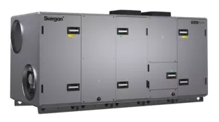 Centrale de traitement d’air avec pompe à chaleur réversible. Le résultat : une qualité d’air optimale, du chauffage et du refroidissement dans une seule enveloppe, à la fois compacte et économe en énergie. La planification est simplifiée car l’intégration des deux systèmes est déjà faite, du point de vue mécanique comme de la régulation. L’installation est plus simple également si vous faites préparer l’unité par l’usine (remplissage, tests etc.). La centrale est également disponible en version pour refroidissement uniquement et se nomme alors GOLD RX/C.