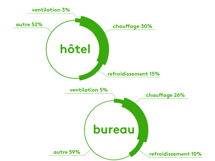 Les systèmes de ventilation et de climatisation sont très énergivores - ils représentent 50 % de la consommation totale d'énergie pour les immeubles de bureaux et 70 % pour les hôtels.
