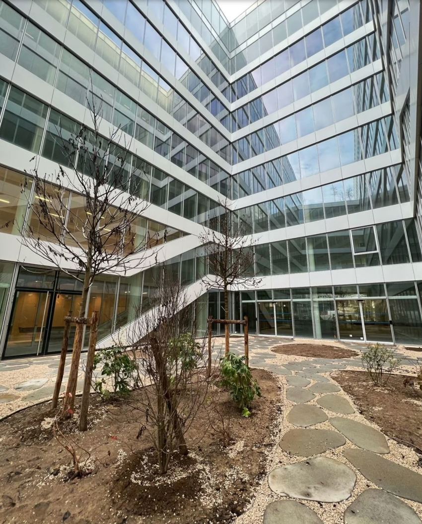 L’immeuble est doté d’innombrables espaces de détente et d’espaces flexibles poussant à la collaboration et à la créativité. Le bâtiment est en forme de U où à l’intérieur se trouve un espace central ouvert sur la ville, qui permet aux collègues et riverains de se retrouver le temps d’une pause ou d’un déjeuner.