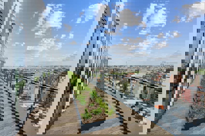 L’ empreinte carbone du bâtiment est diminuée de 60% sur l’ensemble de son cycle de vie par rapport à un bâtiment classique. L’immeuble est connecté au réseau de chaleur de la ville qui produit son énergie à plus de 50% à partir d’énergies renouvelables.