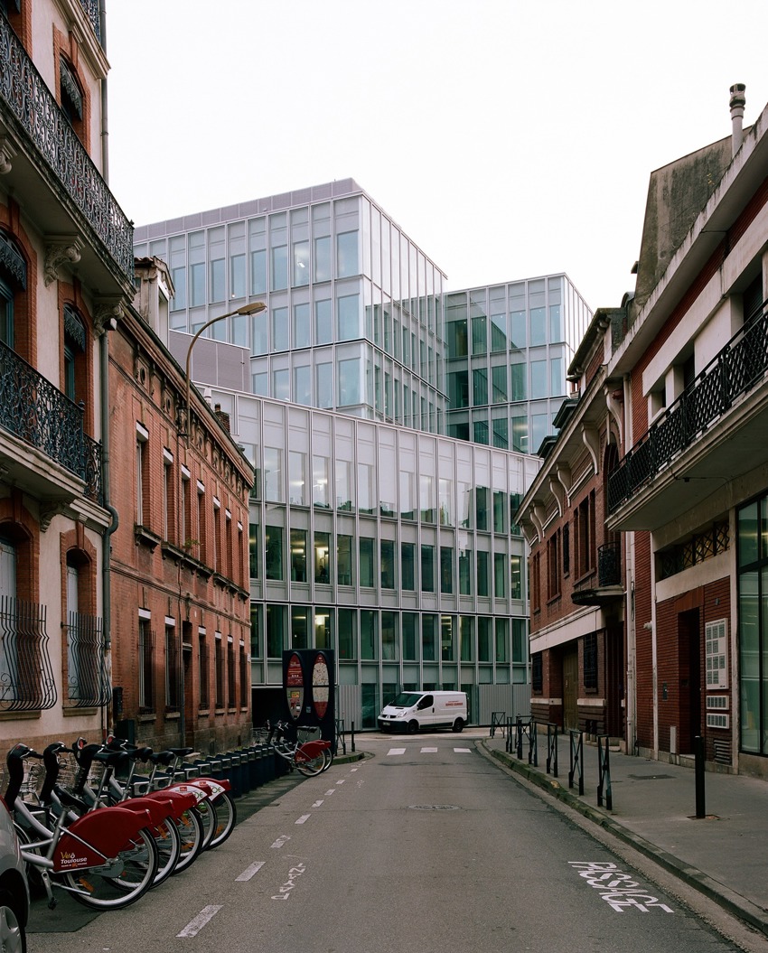 Le projet d’Albi est une opération tiroir en deux phases qui évite une délocalisation des utilisateurs : déconstruction et désamiantage d’un bâtiment secondaire pour servir de repli aux collaborateurs pendant les travaux du bâtiment principal (et héberger à terme une filiale) puis restructuration du bâtiment principal, en conservant au maximum les structures porteuses existantes afin de limiter l’impact environnemental du projet.