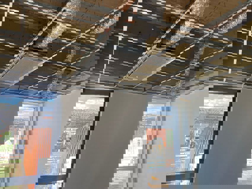 Le système CVC est composé du système WISE accompagné de 35 modules de confort PARASOL Zenith, de plafonniers Eagle et Pelican (pour la reprise), de ses registres de zone, de 24 Wise damper SMA et de pièges acoustiques. Une GOLD RX 20 assure le renouvellement de l’air.