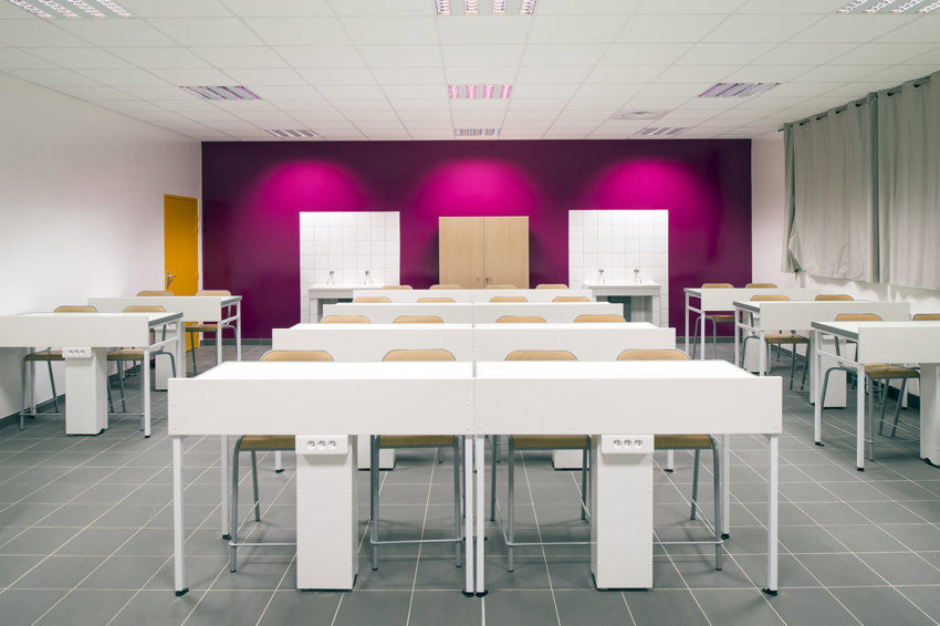 Une attention particulière a été apportée sur la pérennité des matériaux et leur faible maintenance. L’architecture méditerranéenne du bâtiment, qui joue avec des jeux d’ombres et de lumières, s’est parée d’une palette de couleurs égayant les façades.
