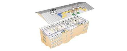 Qualsiasi zona multifunzione, ad esempio le reception, i cucinotti e le mense, vengono climatizzati tramite un diffusore d'aria. Un'unità di comunicazione provvede poi a collegare il sistema alle unità di trattamento dell'aria.