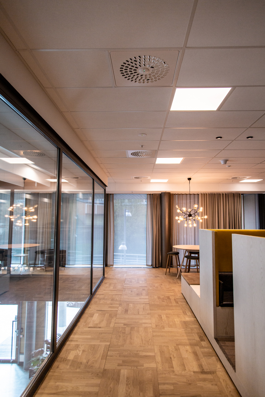 Airborne systems are widely used and suitable in applications where similar indoor climate needs apply. Duct heaters and the wide range of air diffusers allow for slightly different requirements to be set on different floor levels or in different climate zones. Then, carefully chosen diffusers can maintain a good ejection functionality of the supply air and allow for the Coanda effect to persist, even at low supply air temperatures. This eliminates the risk of experiencing high air velocity draughts in the occupied zone.