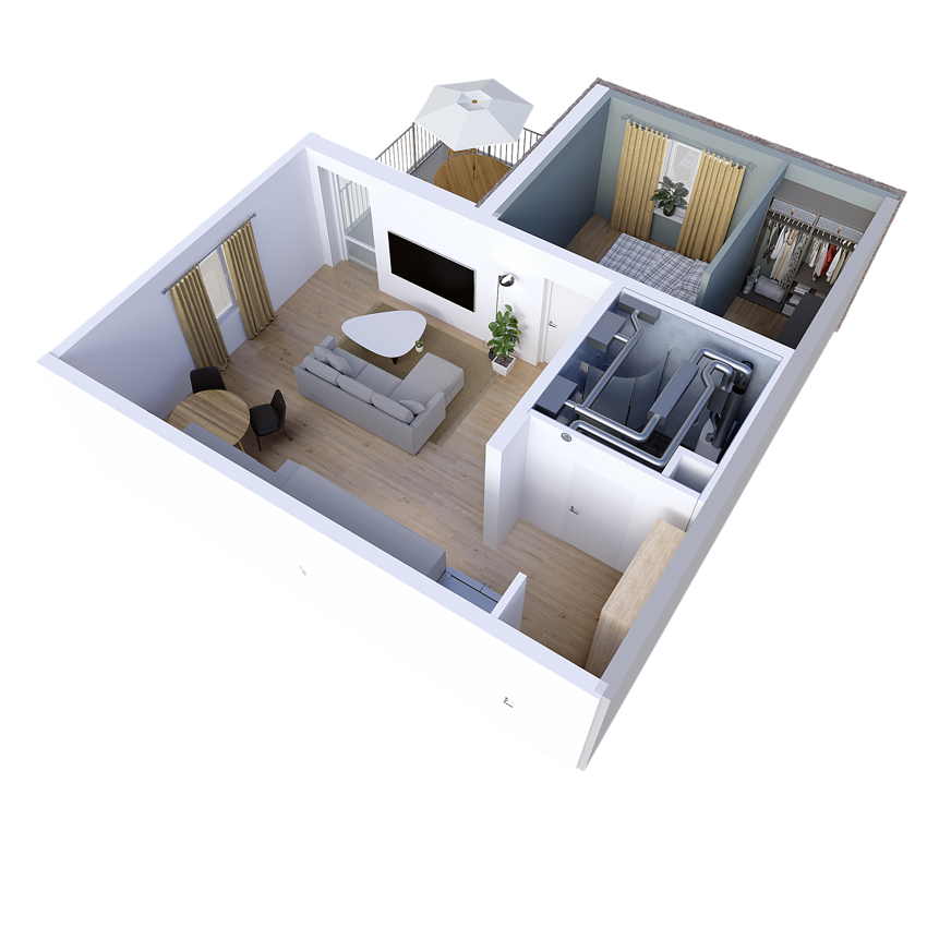 CASA Climate CCF is designed to fit the tight space requirements of apartments. Compact size and multiple duct connections enable various mounting options and climatization for all rooms. CCF comfort modules can be placed inside furniture or in suspended ceiling providing fresh air, heating and cooling to the whole apartment.