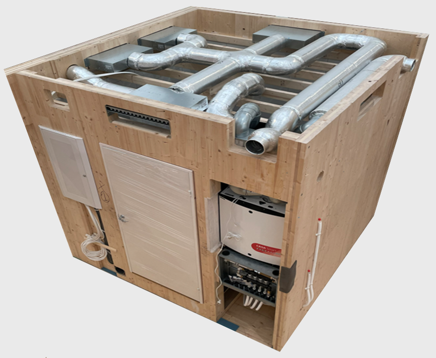 With CASA Climate the comfort modules and the ventilation unit can be fitted inside a single room. This enables module manufacturers to premanufacture the HVAC units inside one building module and just lift everything in place with one lift at building site. This makes installation faster and speeds