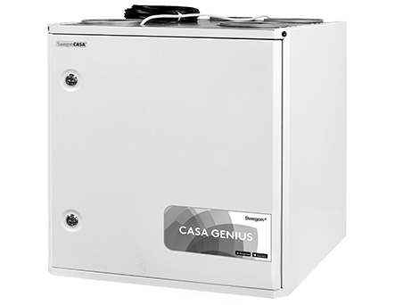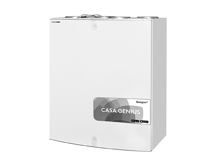 Ved hjelp av styresystemet Swegon CASA Genius kan beboerne overvåke kvaliteten på inneluften (RH, CO2, VOC, °C), styre ventilasjonen etter behov eller la den intelligente styringen regulere ventilasjonen automatisk. Samtidig sparer det energi og garanterer helt automatisk sunn inneluft under alle forhold.