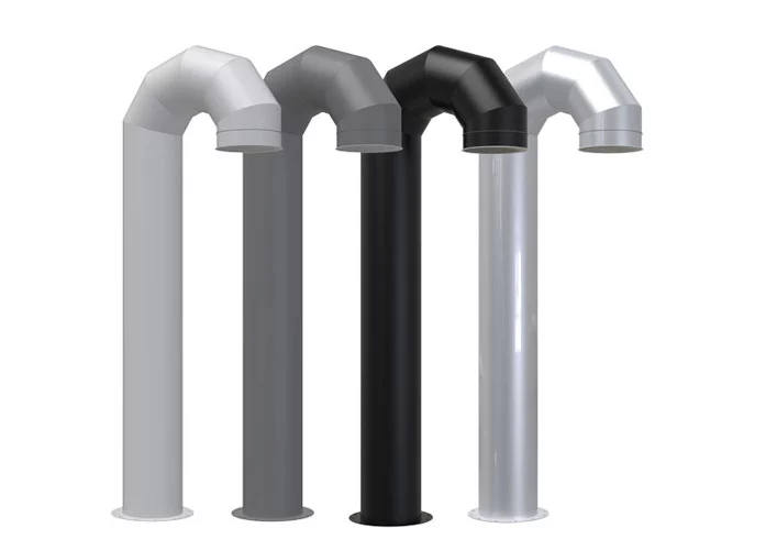 Svanehals for markmontasje. 180 graders utkast med HNG nettingrist som forhindrer rusk og smådyr adgang. Nippel for anslutning mot kanal.