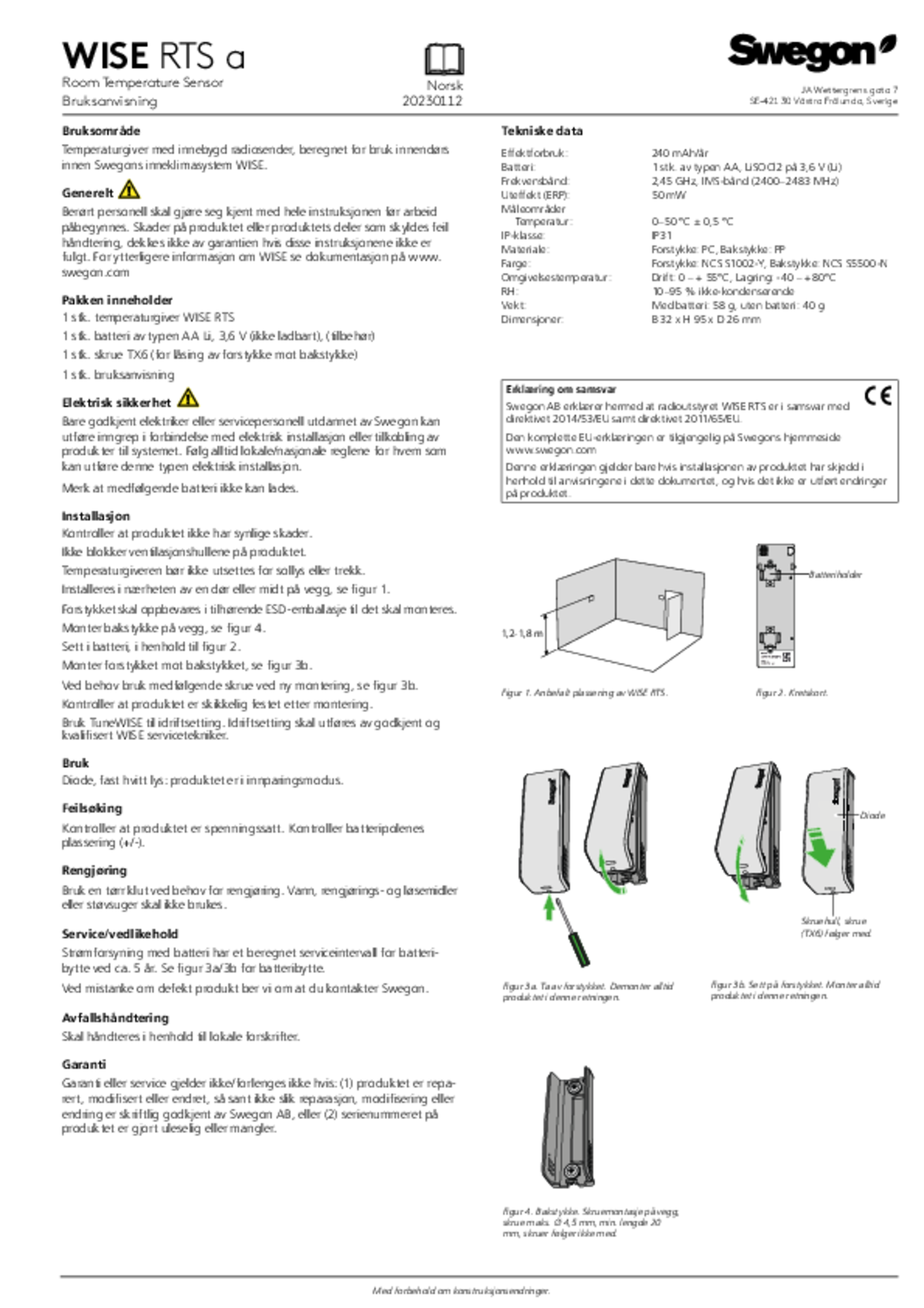 | CE-Deklaration (pdf 422.83kB) | WISE RTSa | Kvalitetsdokument | |