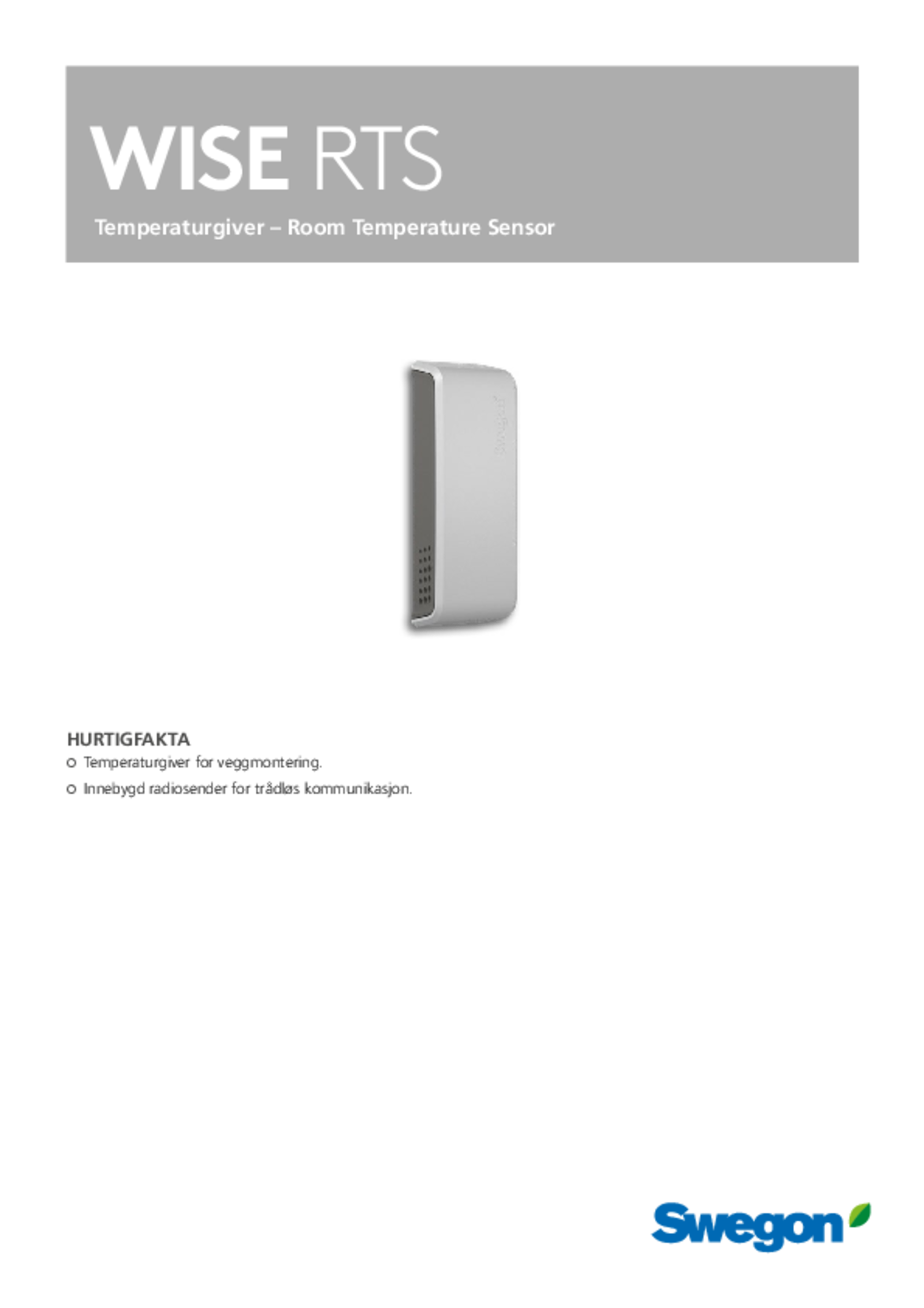 | Temperaturgiver - Room Temperature Sensor (pdf 242.67kB) | WISE RTSa | Teknisk katalog | |