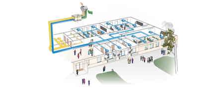 W budynkach użytecznoÅ›ci publicznej liczba osób przebywajÄ…cych w pomieszczeniach jest bardzo zmienna w ciÄ…gu dnia, na przykÅ‚ad w szkoÅ‚ach czy bibliotekach. Zwykle wymagane sÄ… skomplikowane rozwiÄ…zania, aby zapewnić odpowiednie przepÅ‚ywy objÄ™toÅ›ciowe powietrza i temperatury dla aktualnego obciążenia.