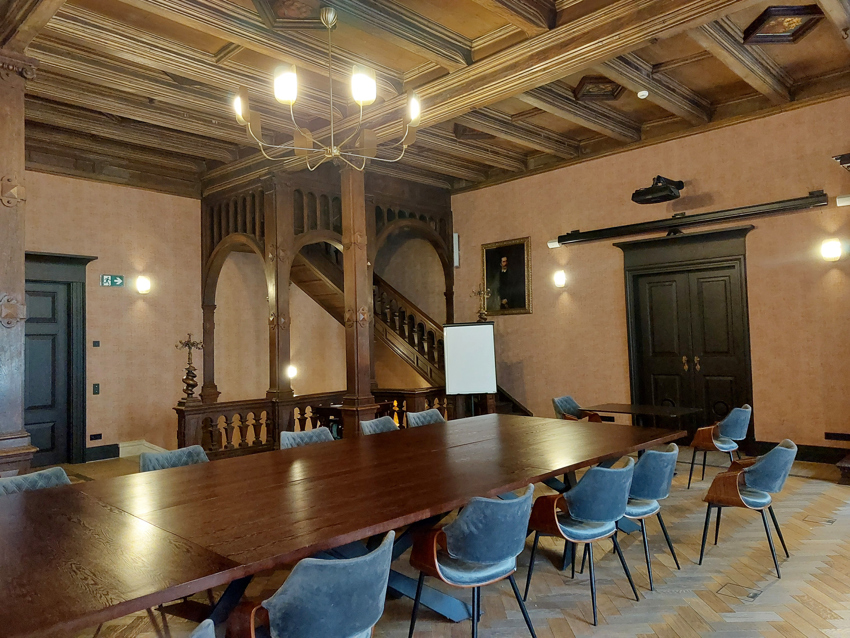 Dawną świetność pałacu można także podziwiać w reprezentacyjnych wnętrzach pierwszego piętra.