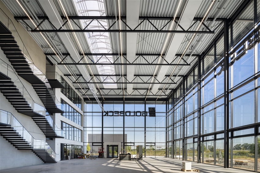 Nowa siedziba firmy Goldbeck w Lipsku wzniesiona zostaÅ‚a z dużymi szklanymi fasadami i oknami dachowymi, które zapewniajÄ… przyjemny dostÄ™p Å›wiatÅ‚a. WewnÄ…trz znajduje siÄ™ salon wystawowy (showroom) o imponujÄ…co wysokim suficie, który odpowiada czterem kondygnacjom powierzchni biurowej tego obiektu. MateriaÅ‚y konstrukcyjne jak i proste duże przestrzenie nadajÄ… wnÄ™trzu nieco rustykalnego charakteru, w którym panuje przyjemny i komfortowy klimat.