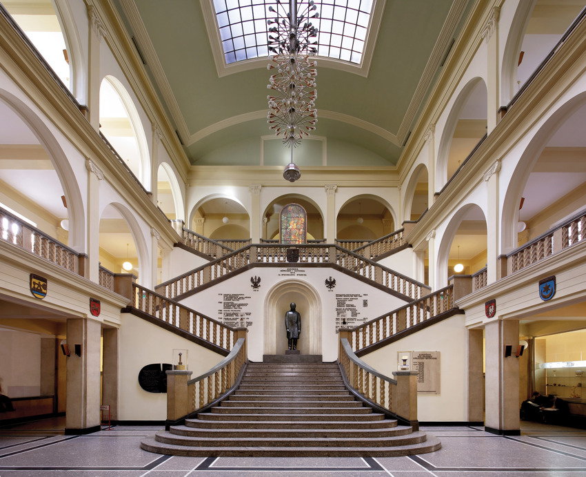 Po wybuchu II wojny Å›wiatowej, w latach 1939–1945 gmach gÅ‚ówny zajÄ…Å‚ okupacyjny rzÄ…d niemieckiego Generalnego Gubernatorstwa. Mienie uczelni ulegÅ‚o wówczas kompletnej grabieży i dewastacji przez niemieckiego okupanta, a rzeźba Å›w. Barbary zostaÅ‚a rozbita przez zrzucenie z dachu (rzeźba widoczna dziÅ› na dachu gmachu gÅ‚ównego jest jej kopiÄ…).