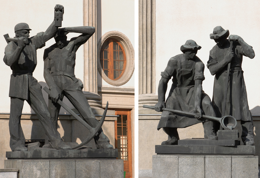 W 1935 odsÅ‚oniÄ™te zostaÅ‚y przed wejÅ›ciem do gmachu gÅ‚ównego Akademii pomniki górników i hutników, wykonane przez artystÄ™ rzeźbiarza Jana RaszkÄ™. RzeźbÄ™ Å›w. Barbary, patronki uczelni, która zostaÅ‚a umieszczona na dachu gmachu gÅ‚ównego pod koniec sierpnia 1939 r., wykonaÅ‚ Stefan Zbigniewicz.
