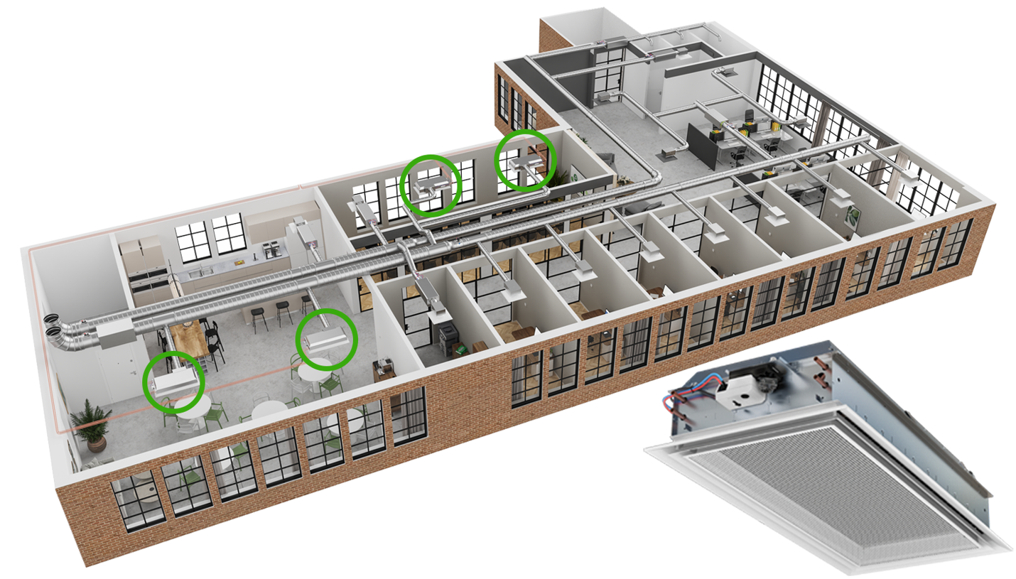 The solution is suitable for smaller projects with requirements for indoor climate control in individual rooms, as well as entire properties. The adaptable solution offers efficient installation and each room may either be fully operating as a stand-alone unit, or simply be integrated with a building management system.