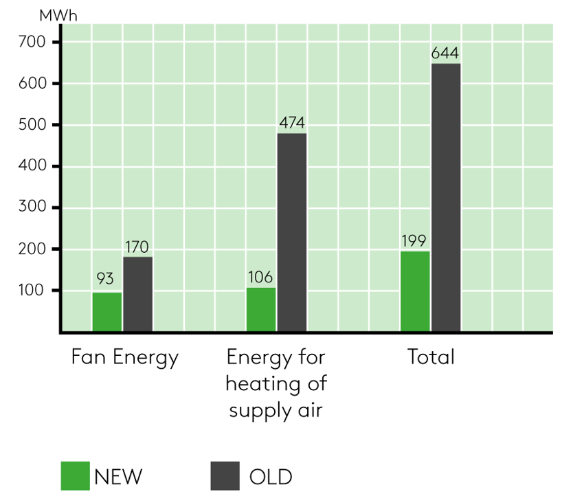 Air handlers without heat recovery is bringing cold air from the outside and heats it, in the Nordics sometimes up to 40 degrees Celsius, to meet the indoor climate requirements. At the same time the same units, without energy recovery, extracts the warm inside air as it is, full of heat energy.