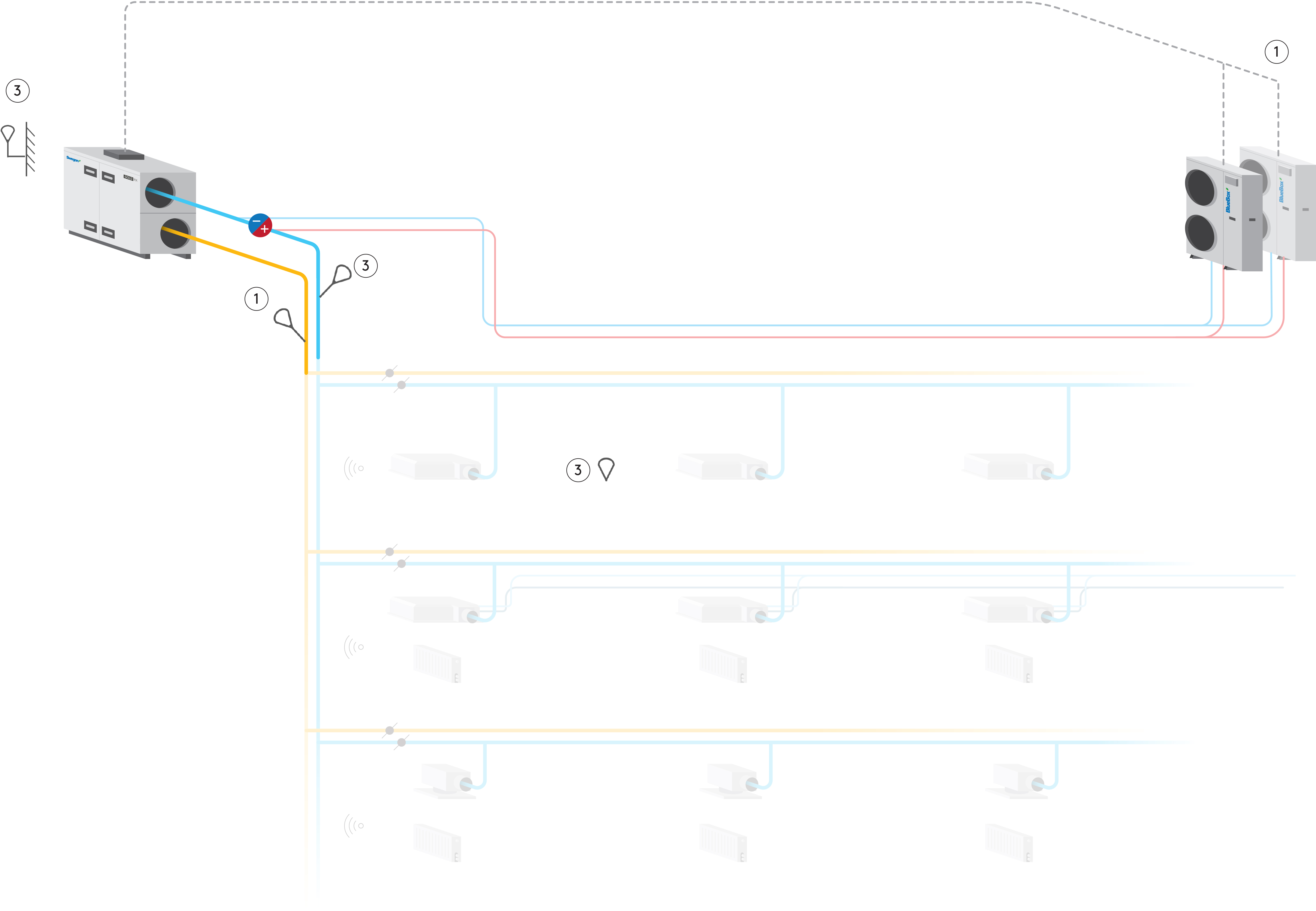 - When combining this solution with a VAV/DCV system (pressure-controlled GOLD), minimum airflow demand for the chiller/heatpump to work properly must be respected (see manual below).