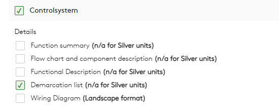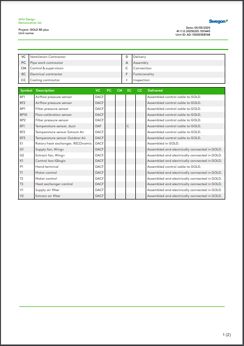 Printout Demarcation list is now available in AHU Design for GOLD units. The printout is selectable in section Controlsystem.