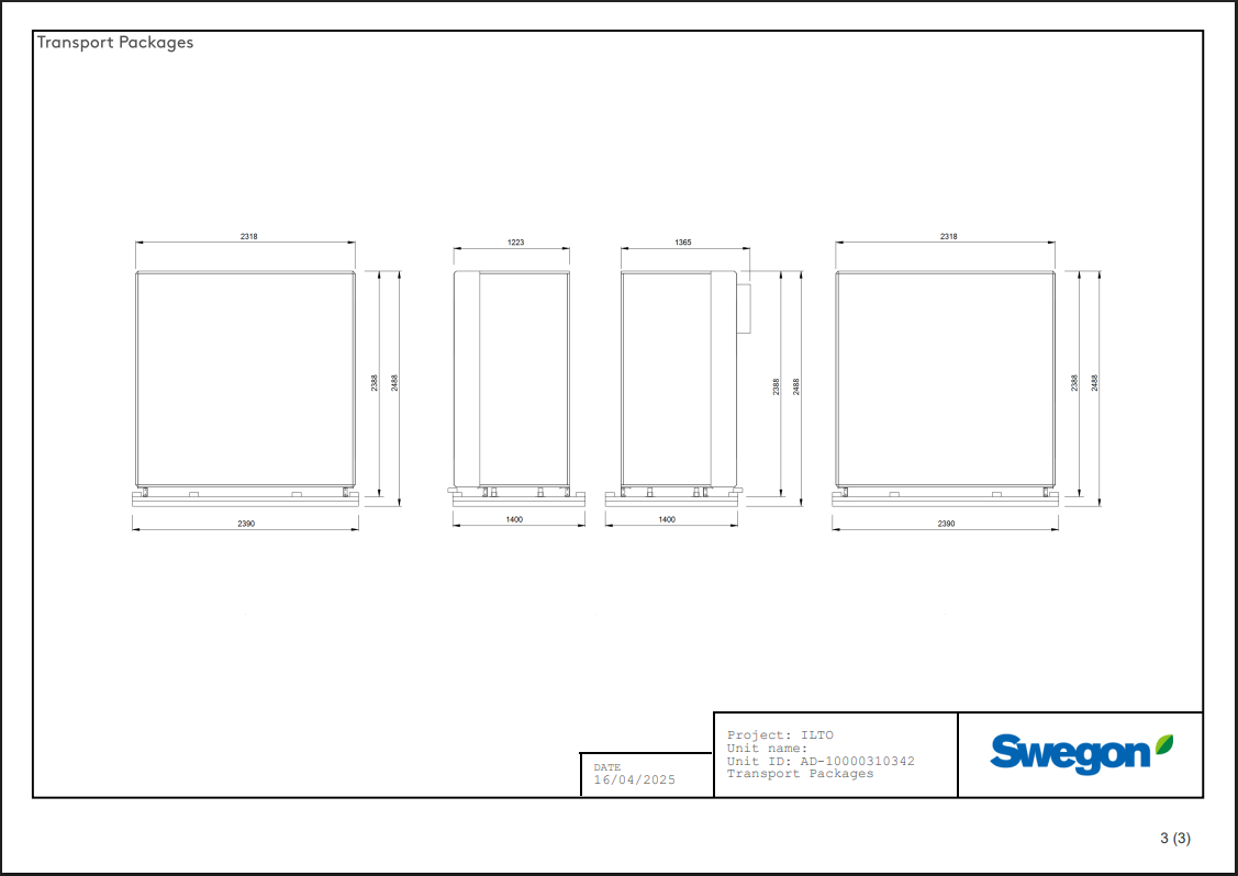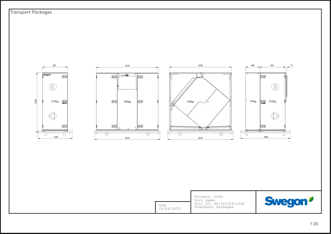 The third phase of the Transport packages project is now complete. In this phase, the user will be able to see a new printout page called Side View. On this page, we are showing the unit delivery parts from the side, including dimensions.