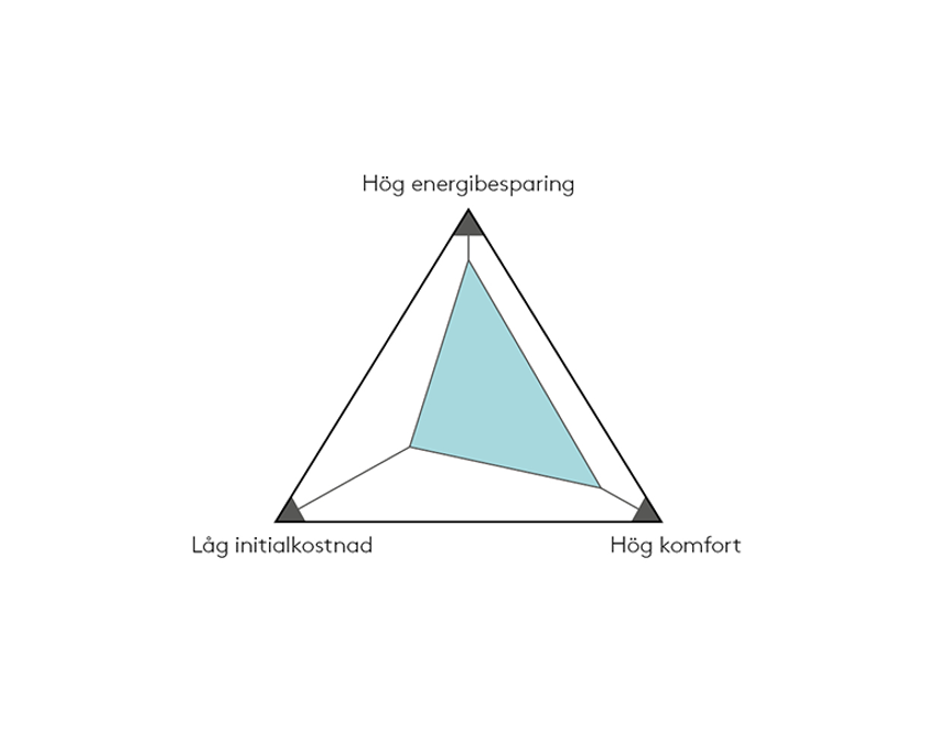 med värmeåtervinning via värmeväxlare, konstanta luftflöden