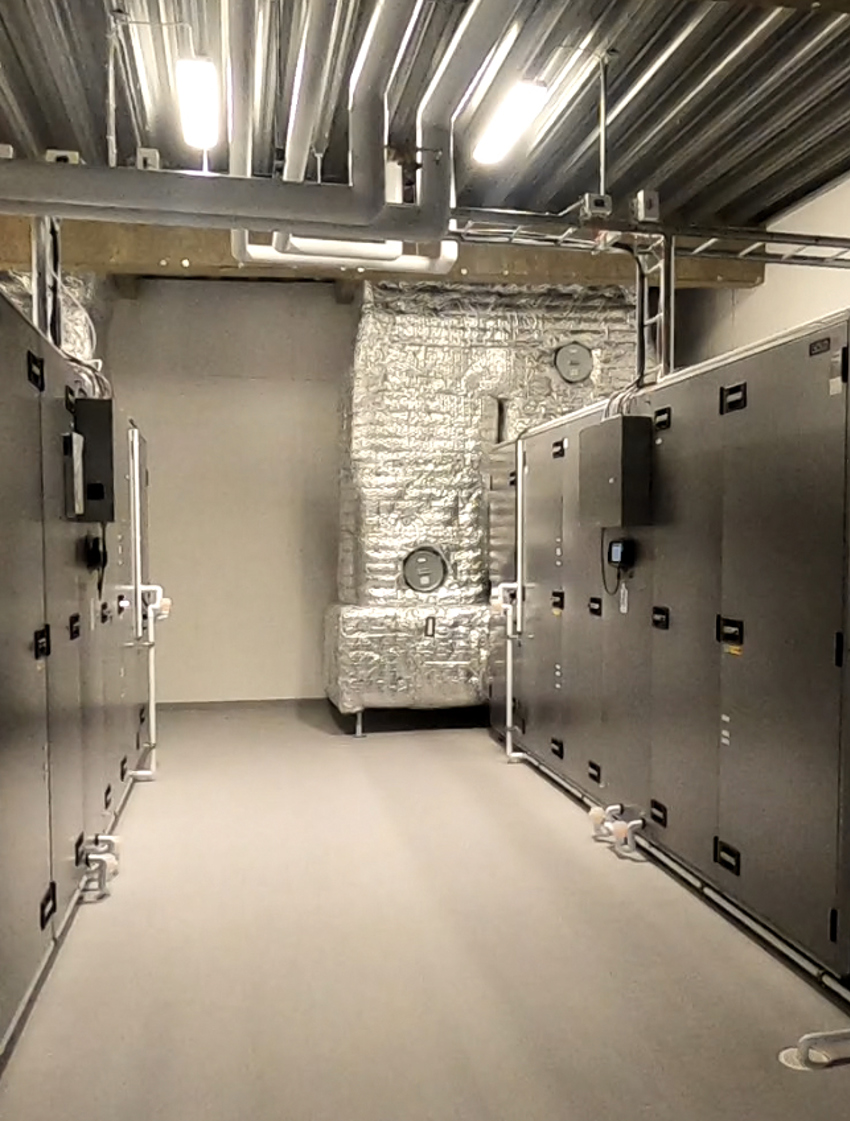 Byggnaderna servas av totalt 9 aggregat vilket säkrar kvalité, ekonomi och möjligheten att kunna sköta framtida drift och underhåll, vilket var viktiga faktorer vid val av produkter.
