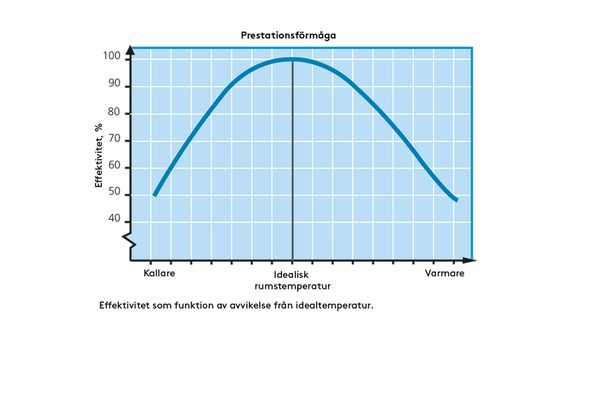 There are many aspects to the effect of the indoor climate on occupants. Pollutants in the air and sound levels in an interior, for example, have well-documented long-term adverse health impacts. In the short term, the indoor climate also affects the performance of any occupants. If the temperature of a room is too low, or too high then performance rapidly declines. In other words, investing in a healthy indoor climate is often one of the main productivity boosts available to a workplace.